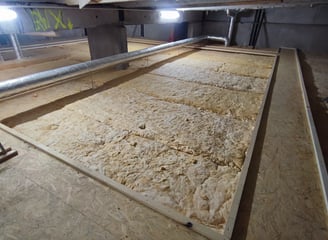 Rolldämmung + Trittfeste Dämmung + OSB-Platten als begehbare Schicht + Dampfbremsen